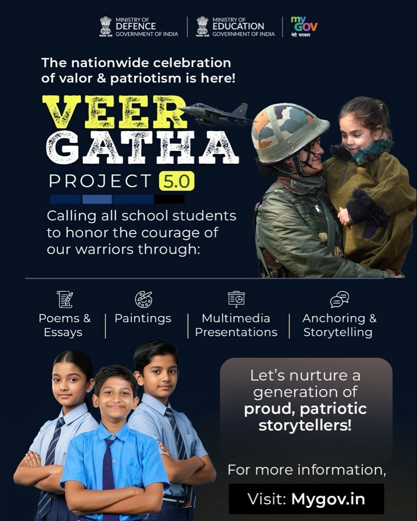 Conclusion: Project Veer Gatha 5.0 continues India’s proud tradition of honoring bravery and sacrifice through education. By combining creativity, history, and technology, this initiative not only immortalizes the spirit of India’s heroes but also empowers students to become aware, patriotic, and responsible citizens.
